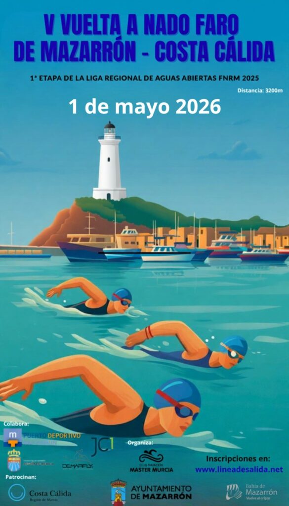 El próximo 1 de mayo de 2026 Mazarrón volverá a convertirse en punto de encuentro para los amantes de la natación en mar abierto con una de las pruebas más atractivas del calendario regional: la V Vuelta a Nado Faro de Mazarrón – Costa Cálida.